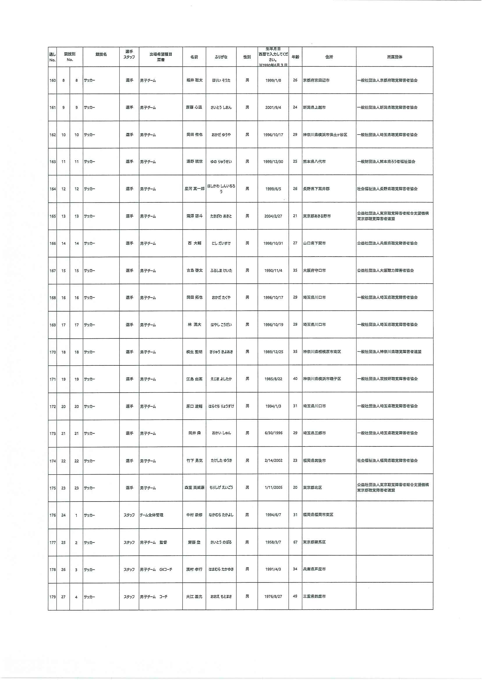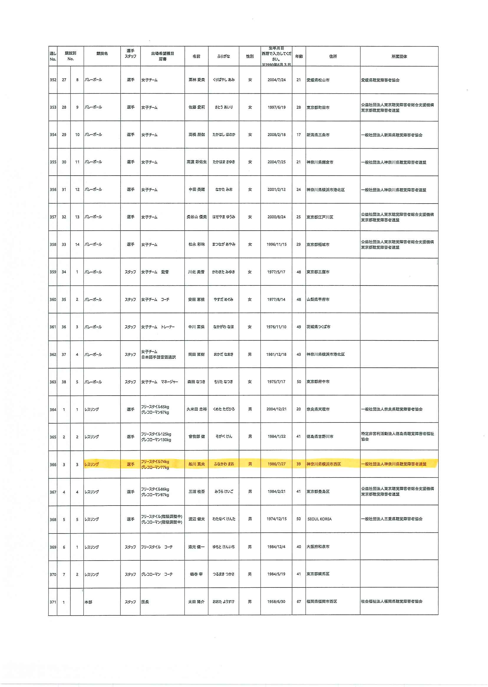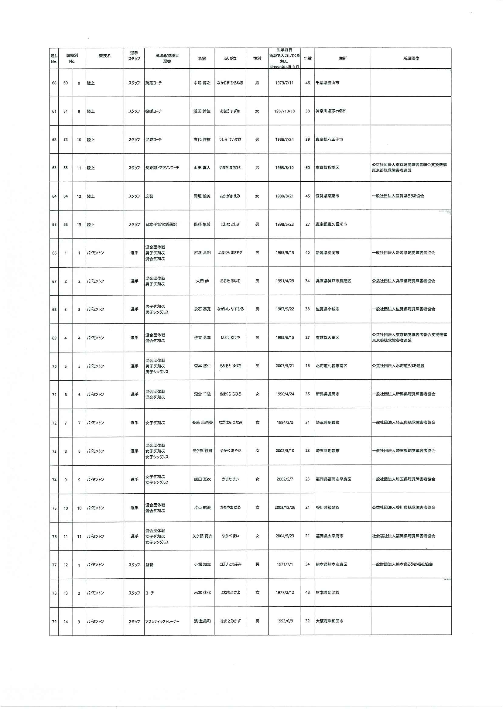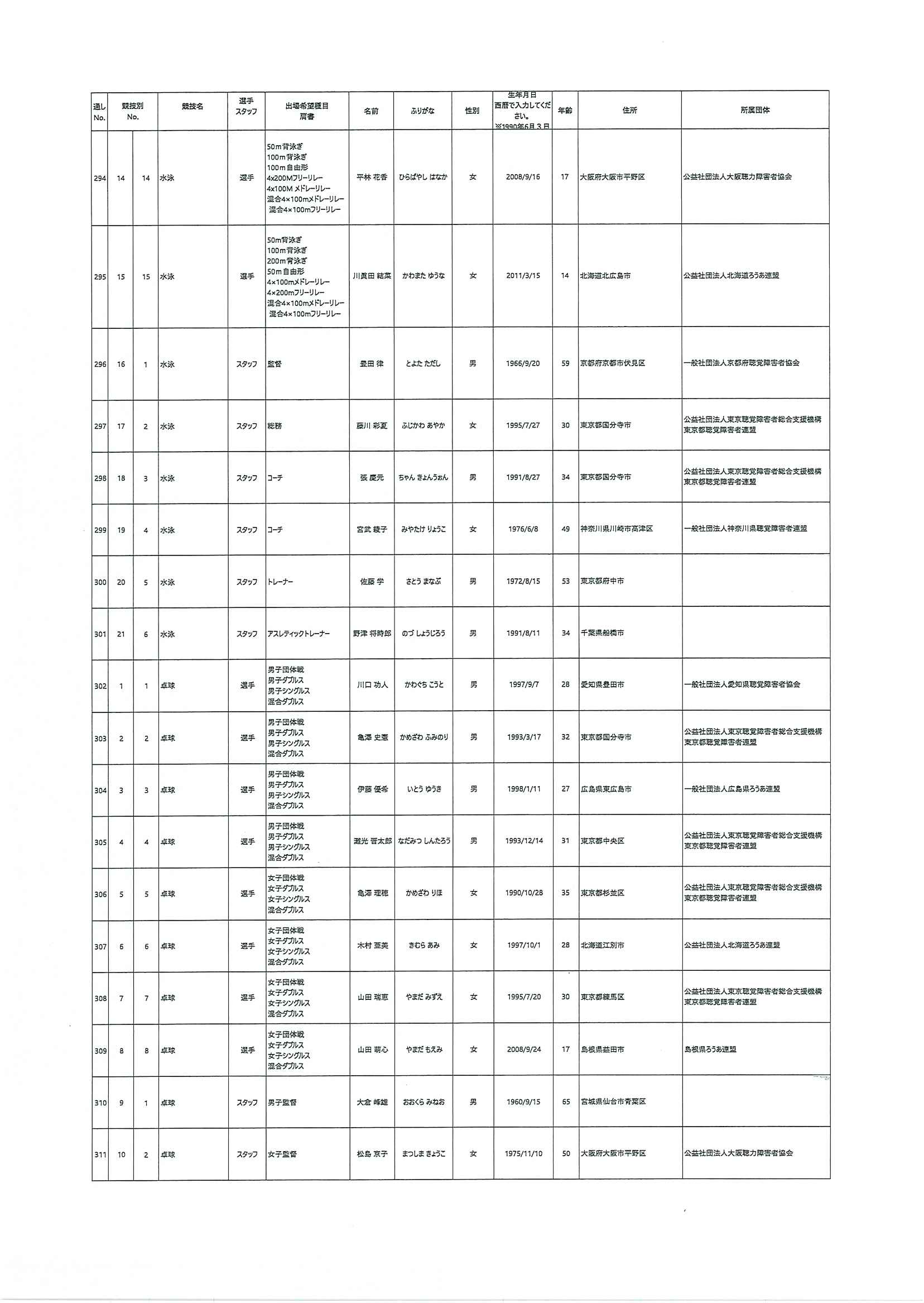 日本代表選手団名簿