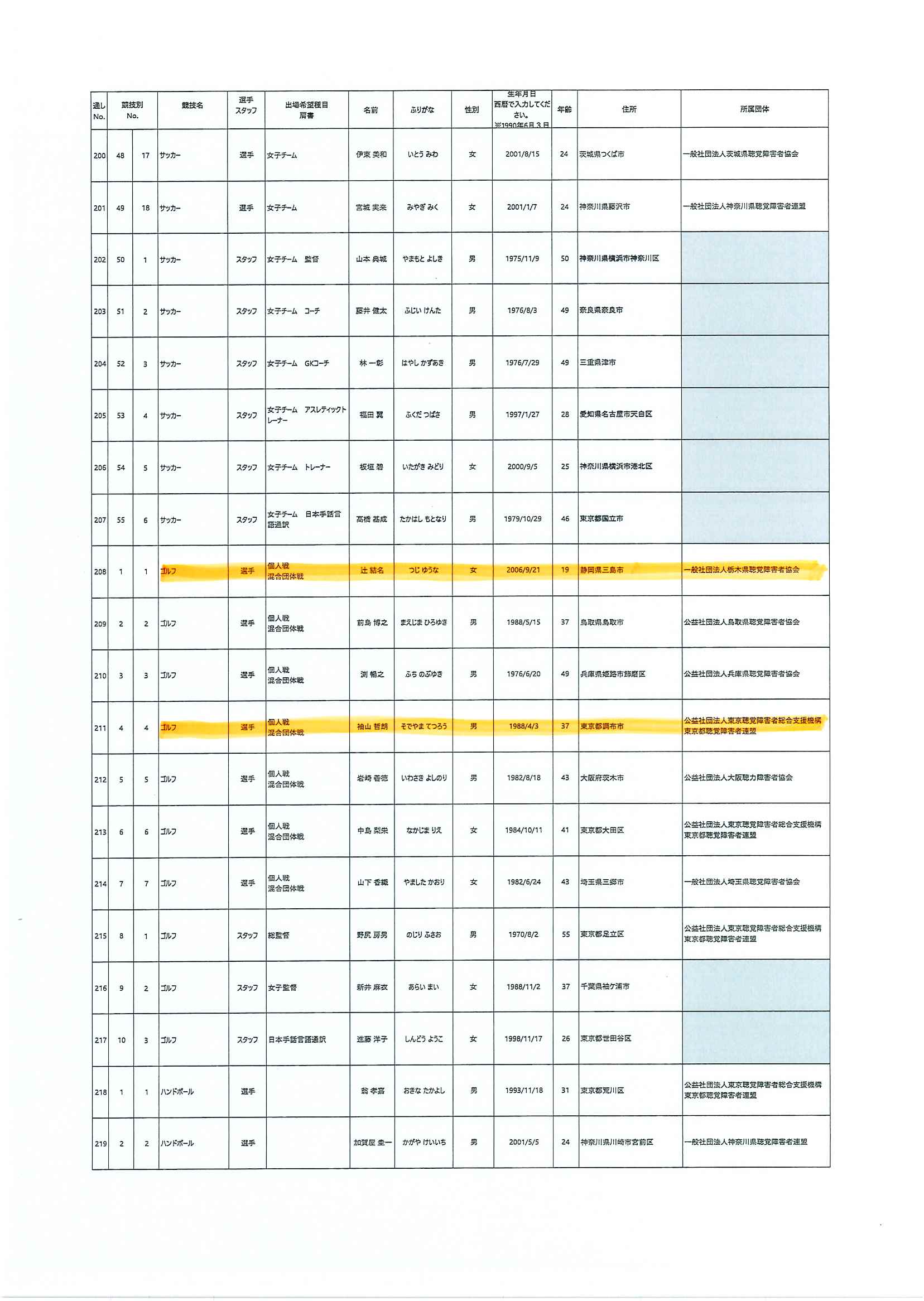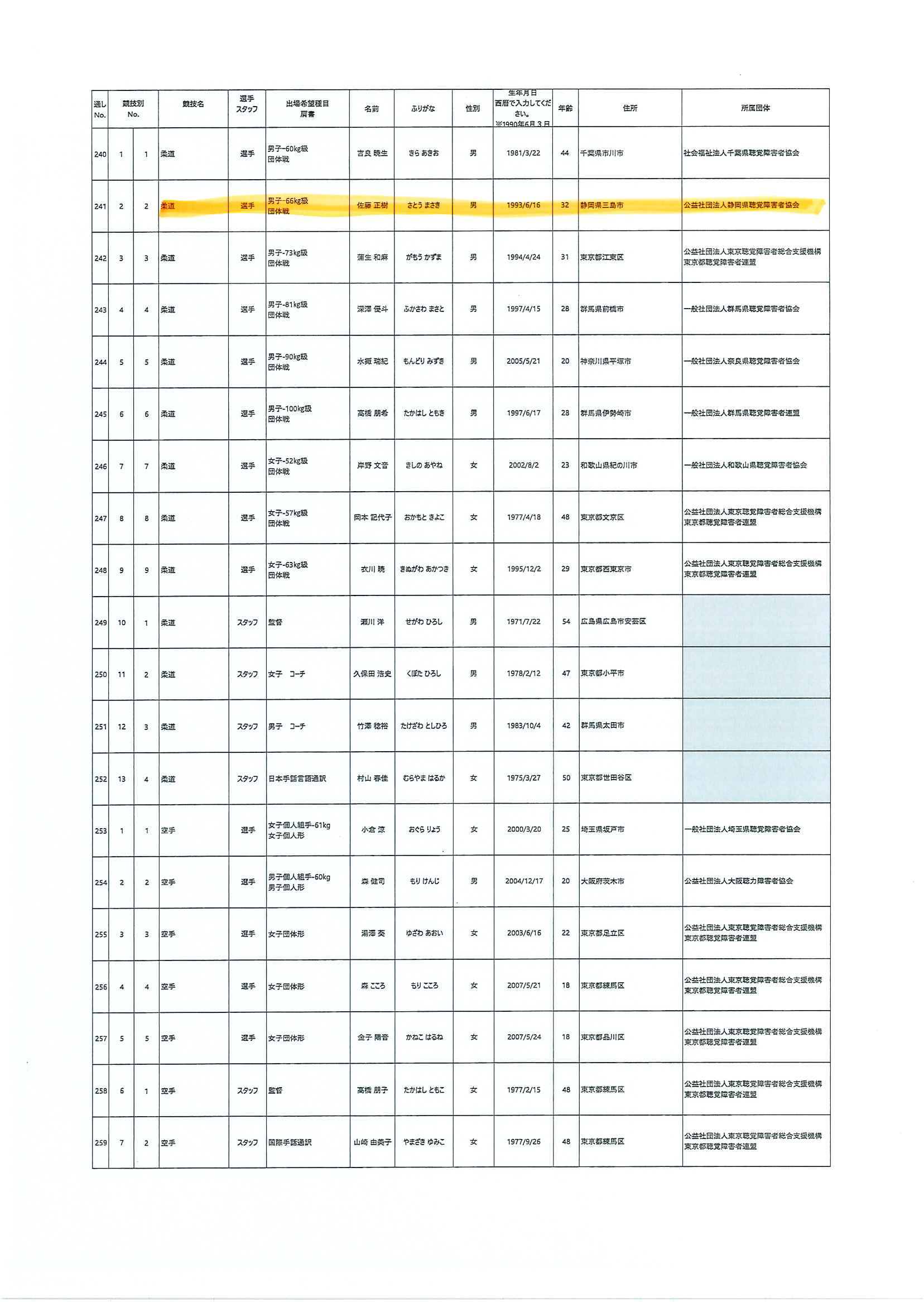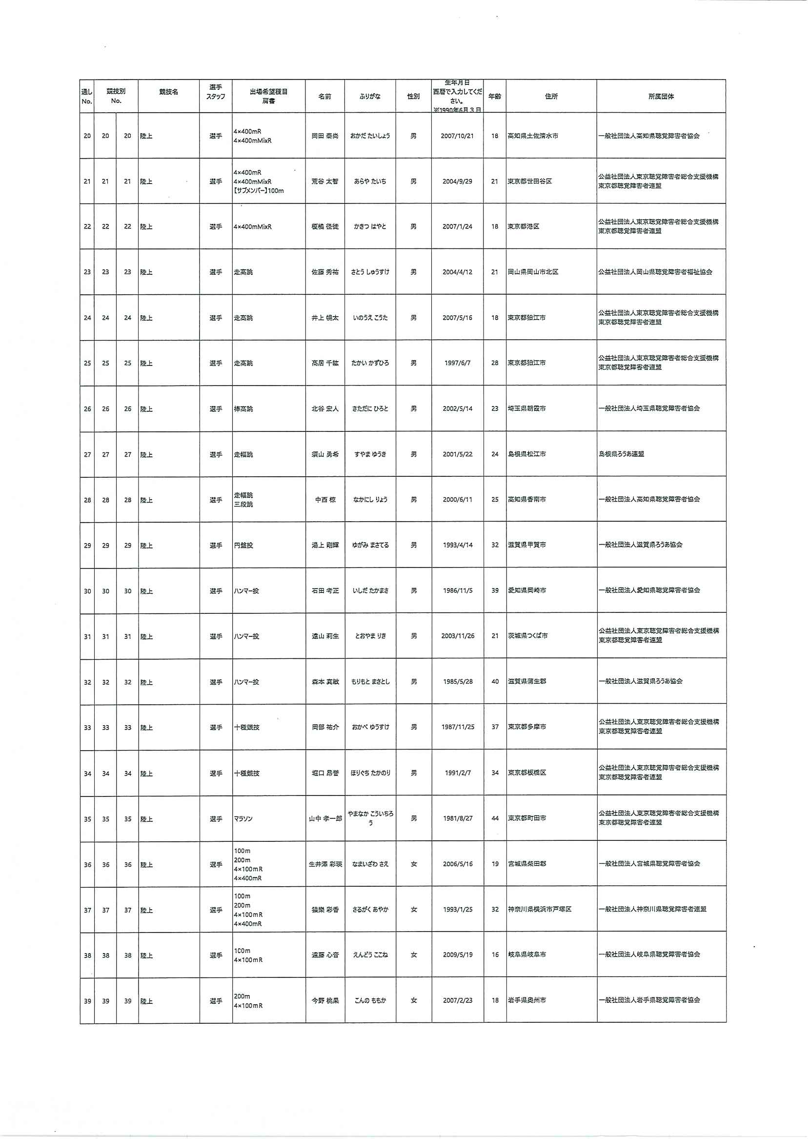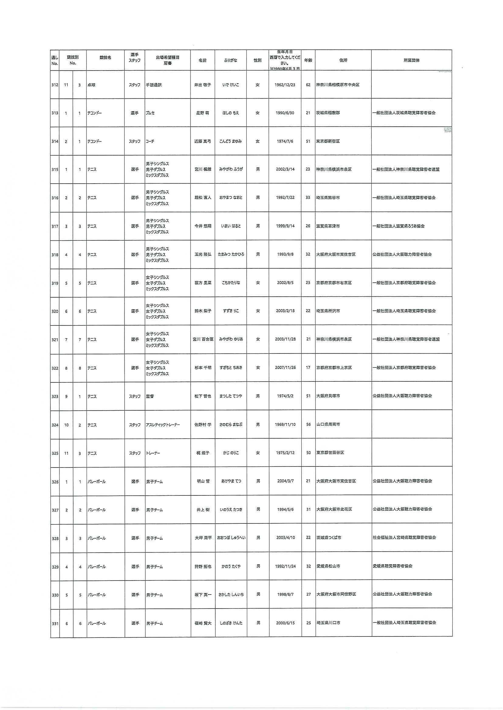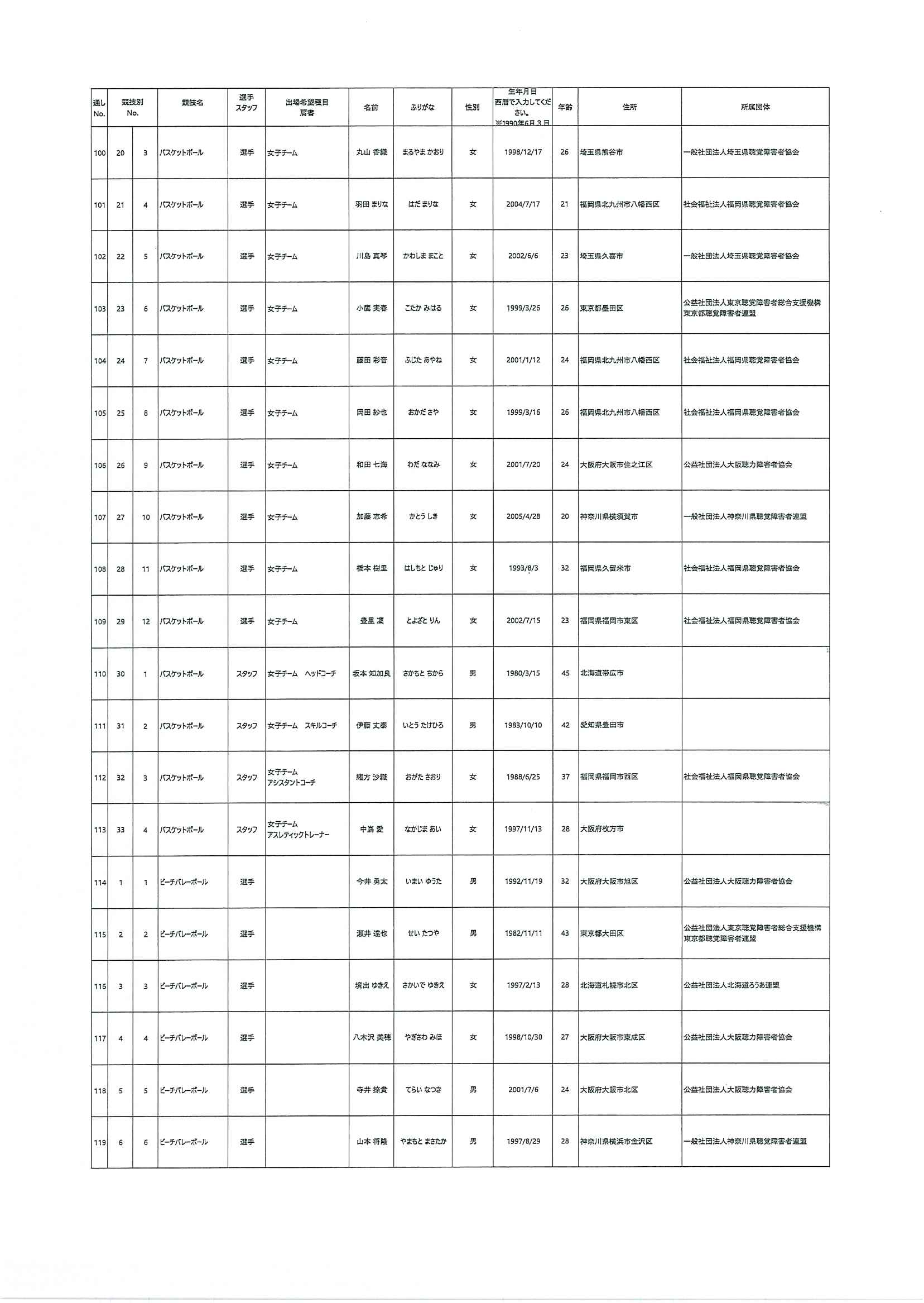 日本代表選手団名簿