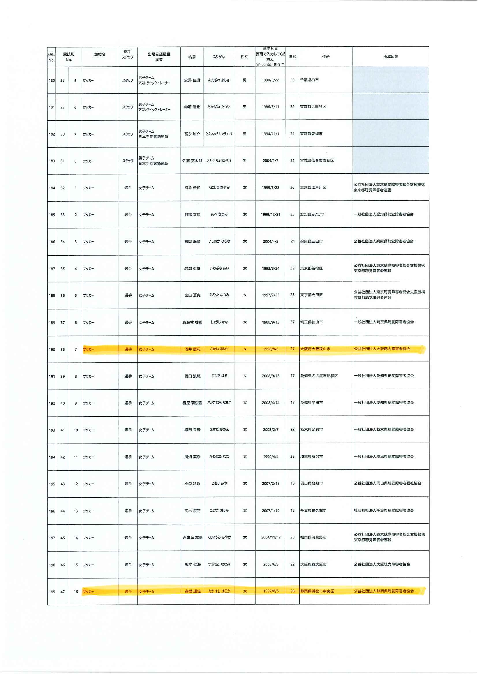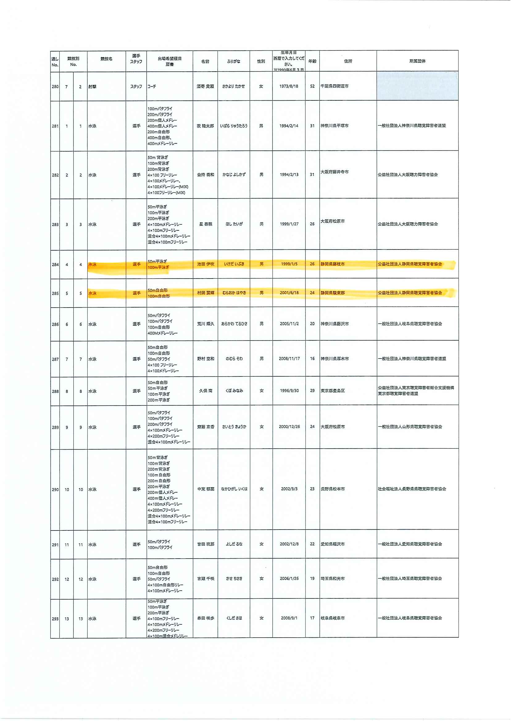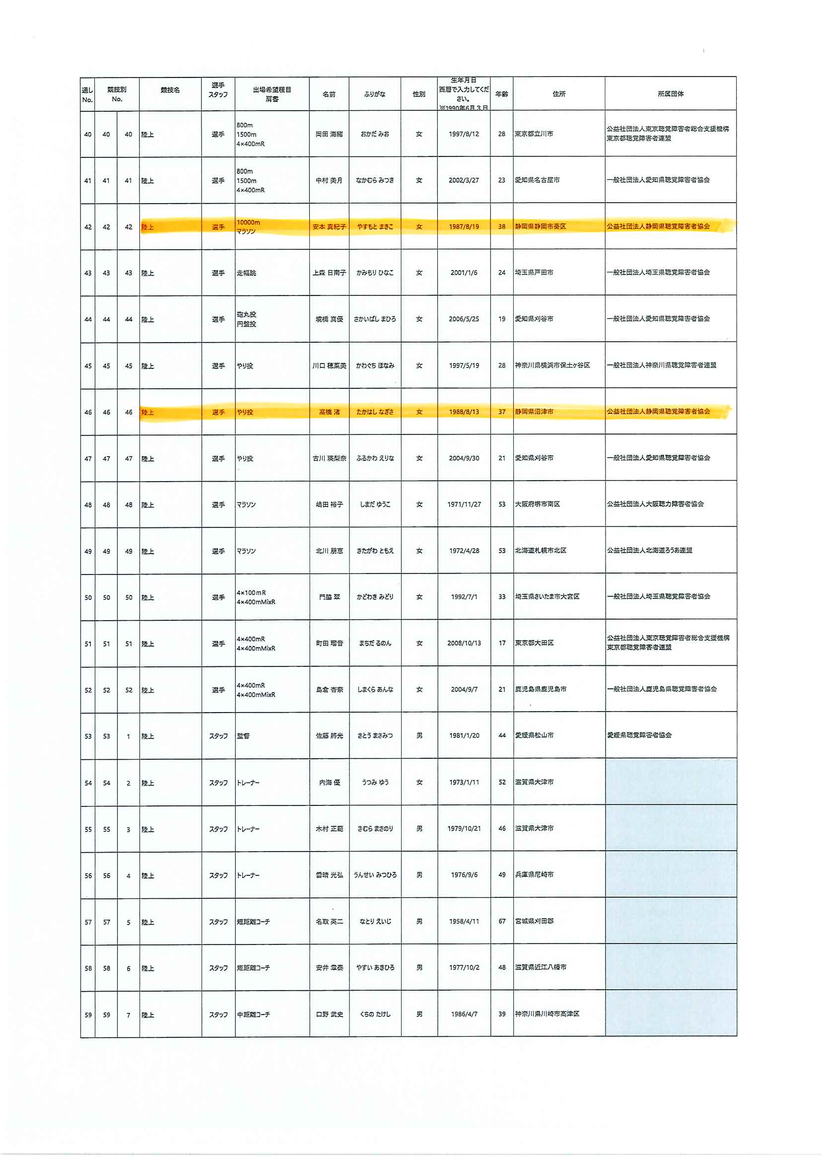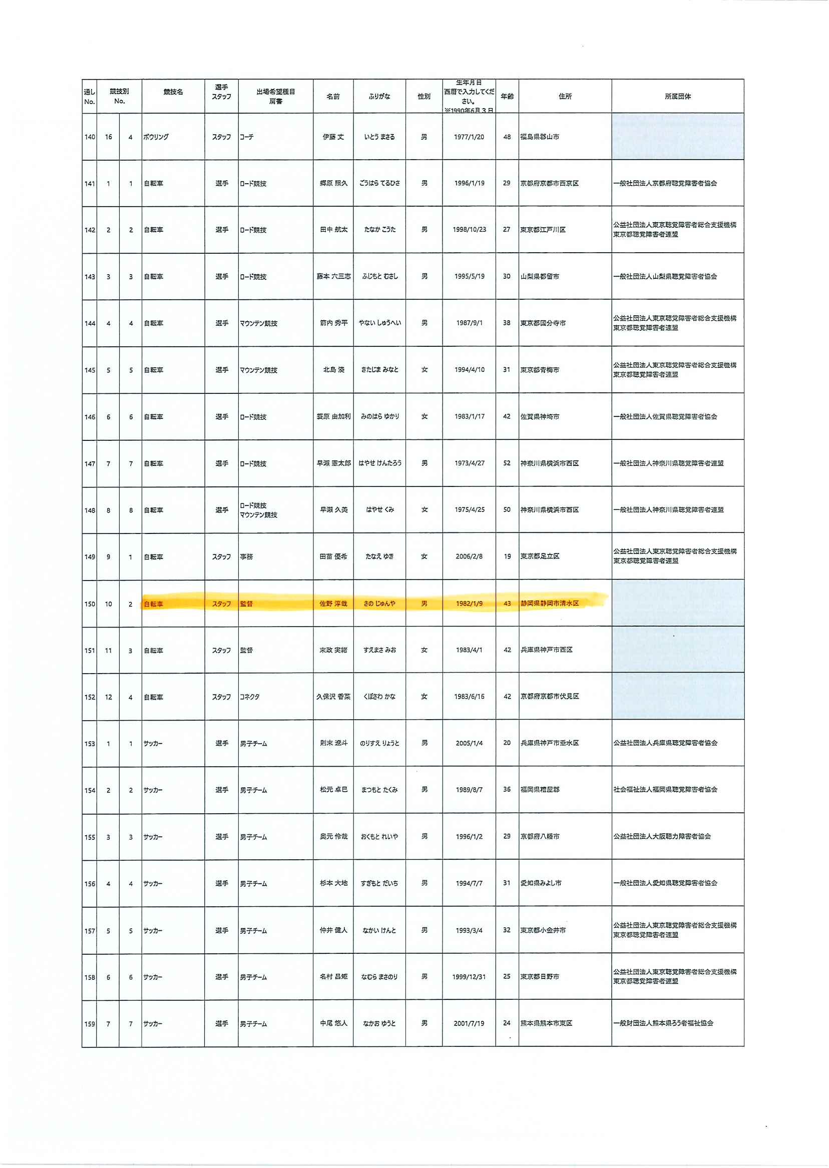 日本代表選手団名簿